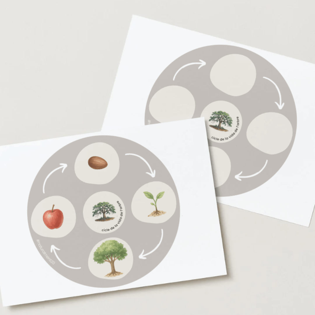 🌿 Cicle de la vida de l'arbre: roda il·lustrada, targetes amb imatges i molt més.