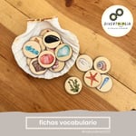- Fitxes del vocabulari de les 4 estacions. 24 peces il·lustrades inspirades en la tardor, l'hivern, la primavera i l'estiu. Un total de 96 peces.